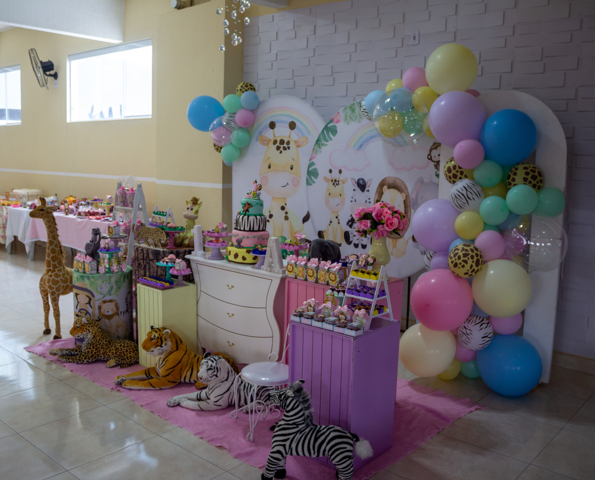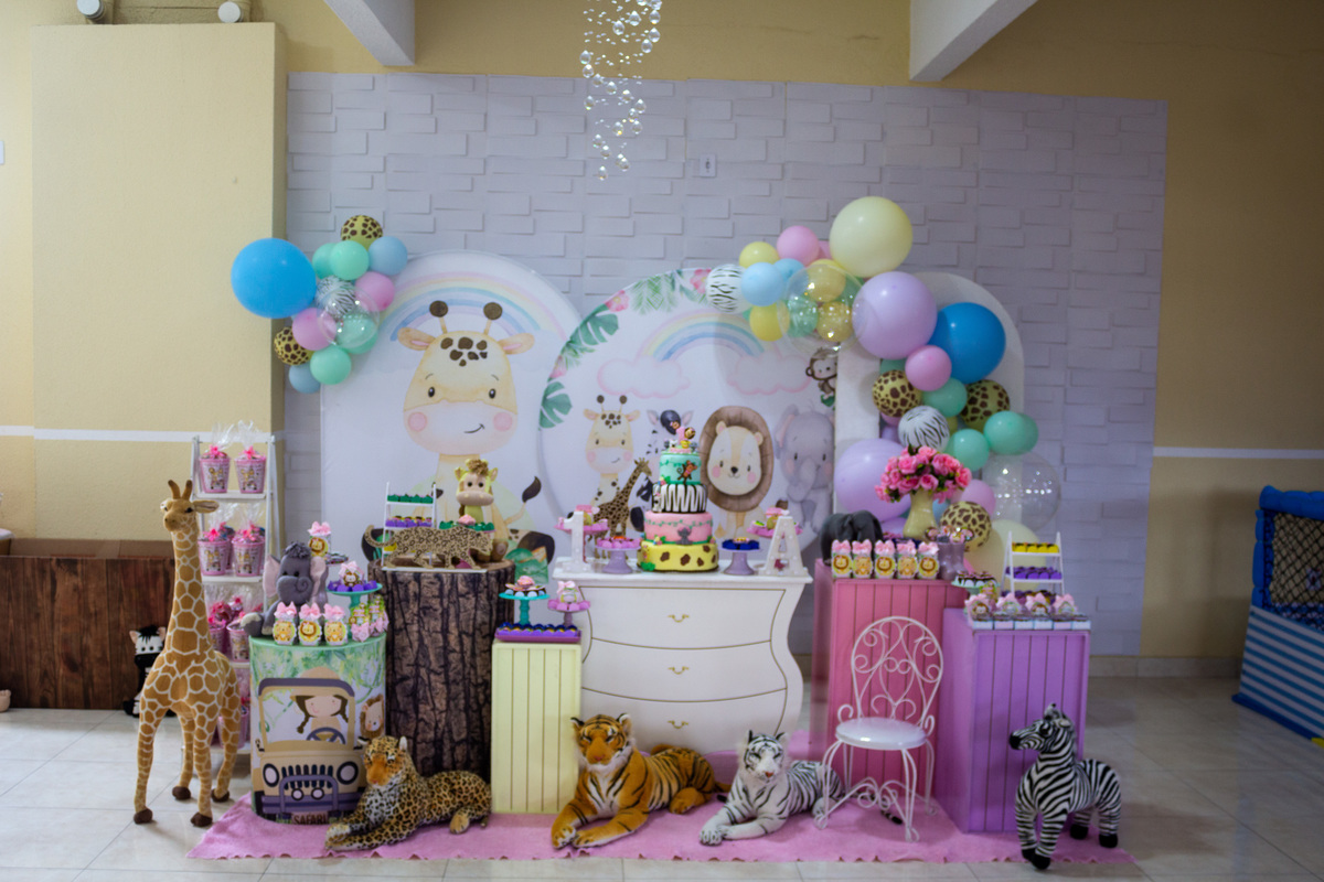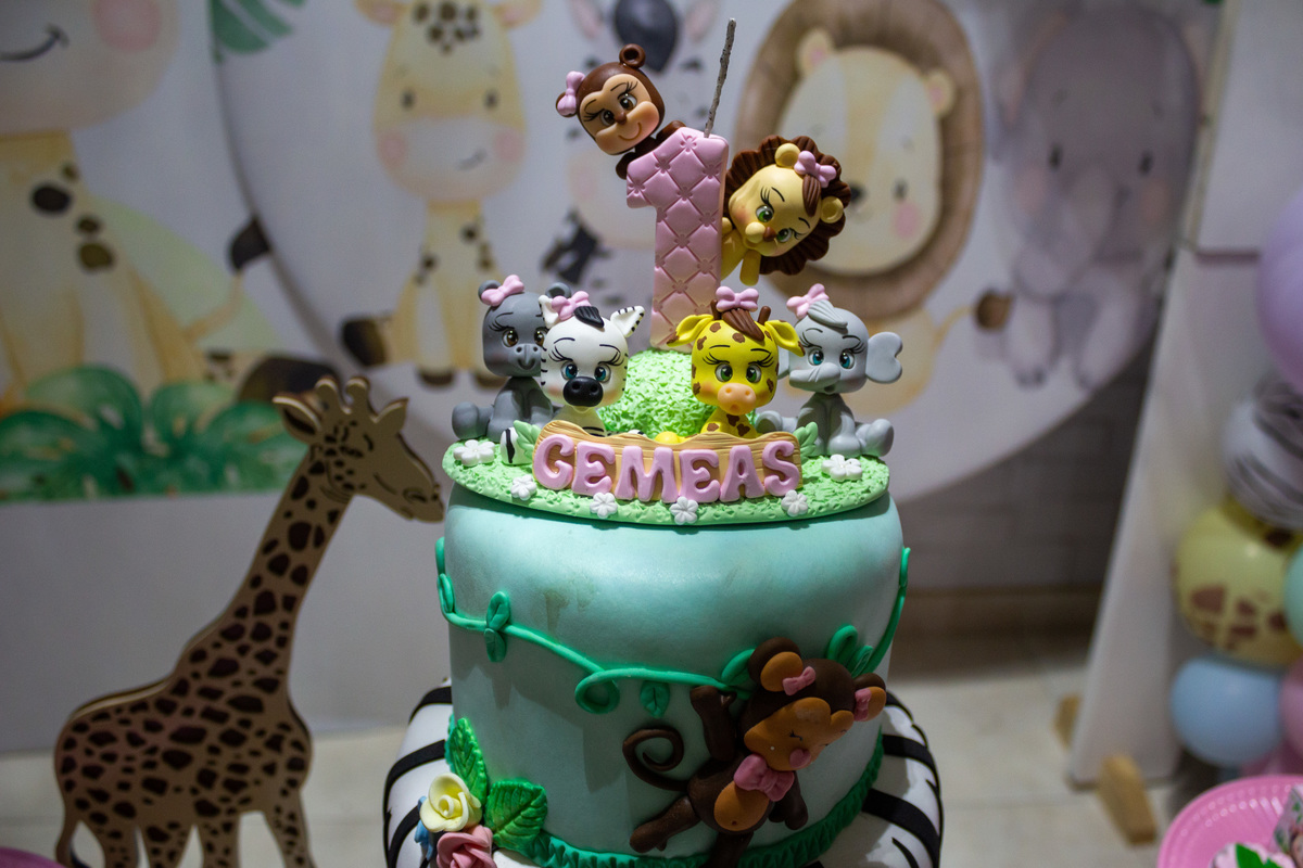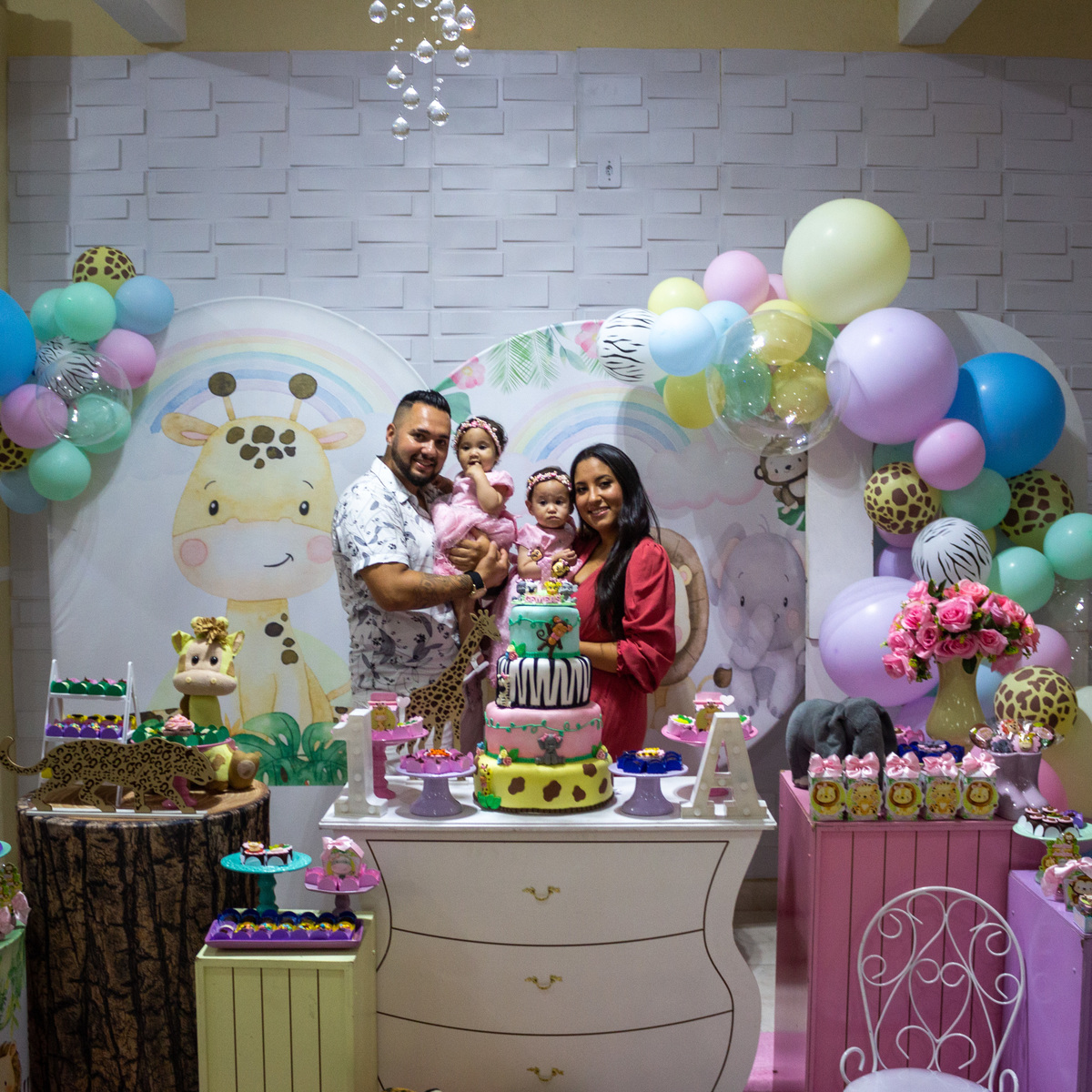 Um dia especial para as gêmeas Ana Lívia e Ana Luísa. Elas completaram 1 ano de idade e comemoraram com uma festa temática de safári.